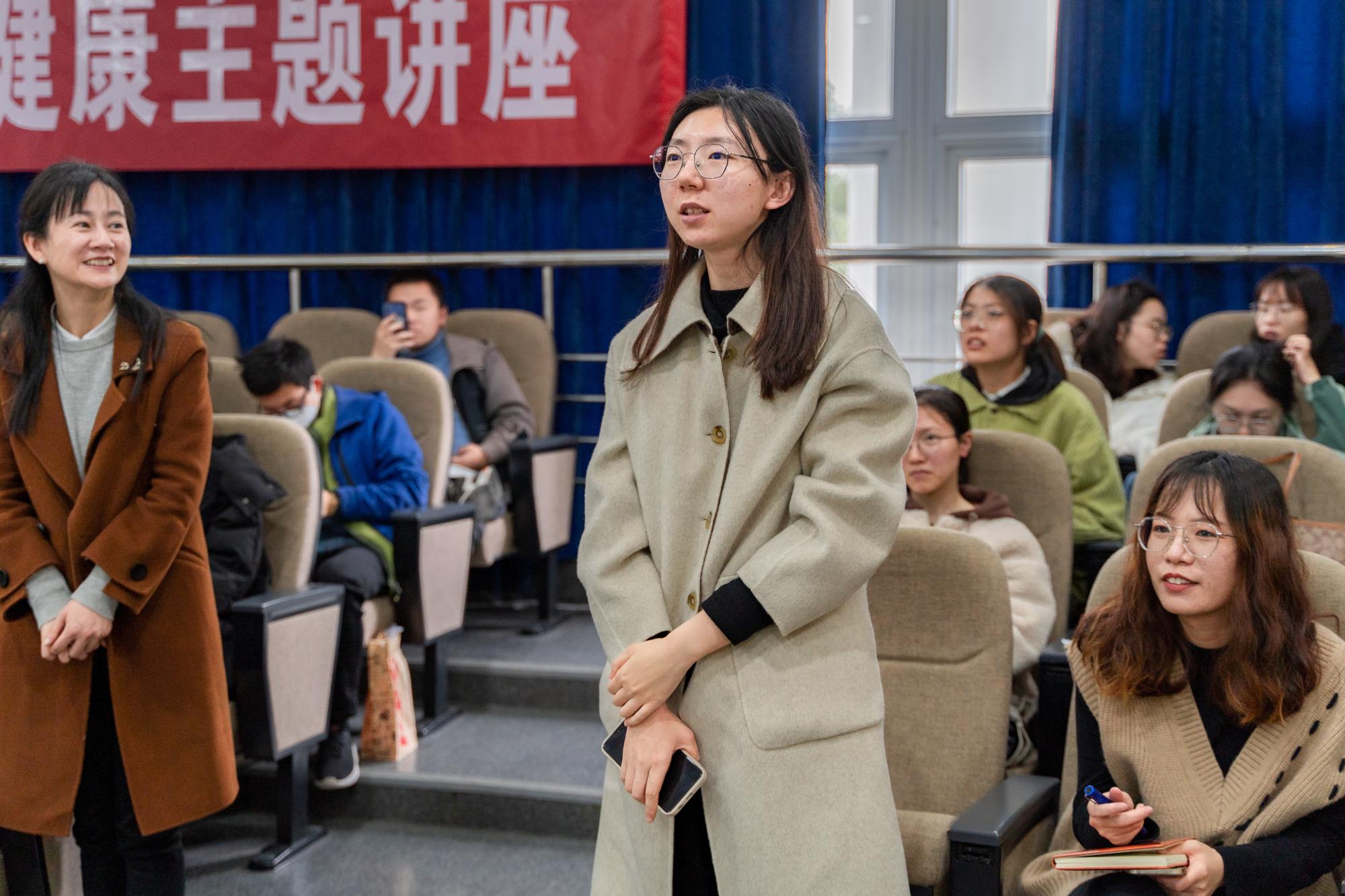 讲座中,郝志敏医生围绕困扰同学们的健康问题,月经量异常、周期不规律、经期疼痛、经期紧张综合征、排卵期出血等问题展开,具体介绍了痛经、经期紧张综合征和阴道炎及HPV等女性生理卫生与心理健康的问题,并提出常见妇科疾病的预防方法、日常注意事项以及女性如何自我保护等相关知识,并倡导女性要正确认识生理健康,做到科学防护,同时要学会自尊自爱,学会保护自己,才能健康成长。